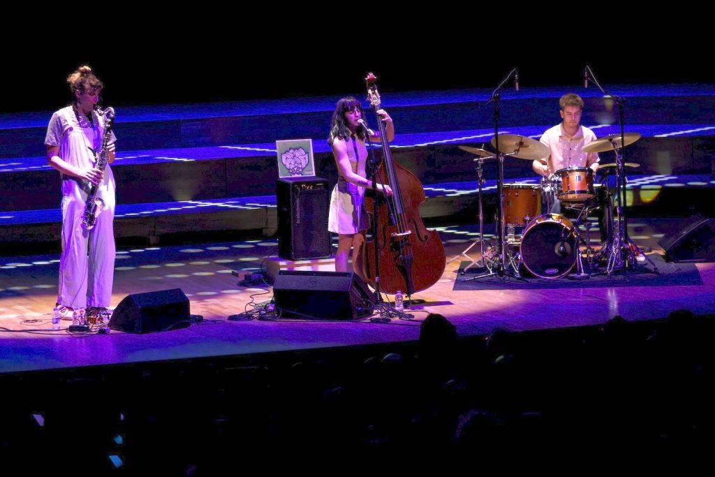 33. İzmir Avrupa Caz Festivali, dün akşam (11 Mart) AASSM’de İsviçreli Grup Knobil’i ağırladı. Eleştirmenlerin, ‘çılgın ve cüretkâr’ olarak tanımladığı kontrbasçı, şarkıcı ve besteci Louise Knobil, kendilerine “Knodisciples” (Knobil müritleri) diyen Chloé Marsigny (basklarnet ve efektler) ve Vincent Andreae (davul) ile dinleyenlerine, canlı, heyecanlı ve samimi bir caz gecesi yaşattı.