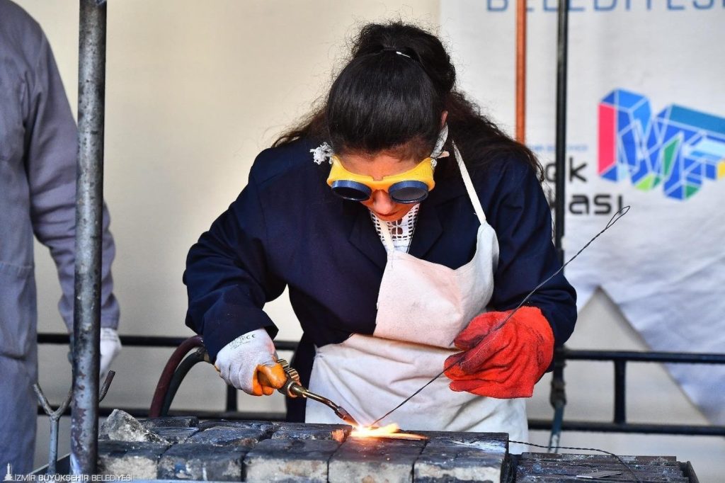 İzmir Büyükşehir Belediyesi, Meslek Fabrikası ile ücretsiz mesleki eğitimler, sektör iş birlikleri ve istihdam yönlendirme çalışmalarıyla bütüncül bir sosyal üretim modeli olarak öne çıkıyor. Özellikle kadın ve gençlerin gelişimine katkı sağlayan Meslek Fabrikası; 15 ilçede, 29 kurs merkezinde, yaklaşık 35 alanda ve 215 branşta ücretsiz mesleki eğitim sunuyor. İki yılda 985 kurs açılırken, 18 bin 952 kursiyer eğitim aldı. 11 bin 304 kursiyer belge almaya hak kazandı. Hâlihazırda 80 kursta 1250 kursiyer eğitime devam ediyor.