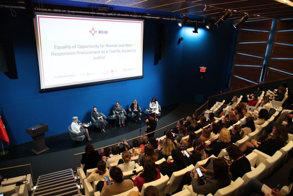 Açılış konuşmalarının ardından ‘Adalete Erişim İçin Bir Araç Olarak Kadın Erkek Eşitliğine Duyarlı Tedarik’ başlıklı bir panel düzenlendi. TURKWEN Yönetim Kurulu Başkanı Kadire Zeynep Sayım Yazal’ın moderatörlüğündeki panelde, UN Global Compact Kıdemli Yöneticisi Lina Al Qaddumi, UN Women Genel Merkezi Program Uzmanı İsatou Badjie, My Beachy Side CEO’su Gamze Ateş ve Hepsiburada Kurumsal İletişim, Sürdürülebilirlik ve Sosyal Etki Direktörü Canan Binal Yılmaz konuşmacı olarak yer aldı. Panelistler, girişimci kadınların küresel pazarlarda daha görünür ve rekabetçi olmalarını sağlayacak mekanizmaların oluşturulmasının önemine dikkat çekti.