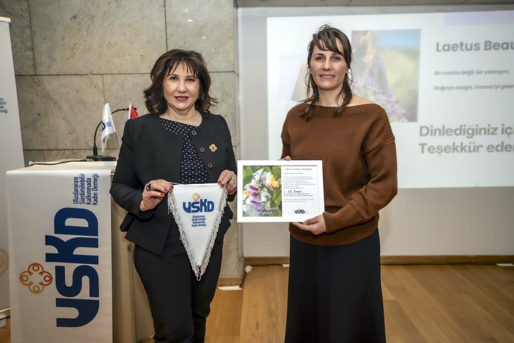 Uluslararası Sürdürülebilir Kalkınmada Kadın Derneği (USKD), aylık üye toplantısını Ontur Otel’de gerçekleştirdi. Etkinliğin bu ayki konuğu, “Topraktan Laboratuvara Uzanan Bir Yolculuk” başlıklı sunumuyla Laetus Beauty markasının kurucusu Elif Bozkurt oldu. Birleşmiş Milletler’in 2030 Sürdürülebilir Kalkınma Hedefleri doğrultusunda, özellikle toplumsal cinsiyet eşitliği ve kadının güçlendirilmesi odaklı çalışmalar yürüten USKD’nin Yönetim Kurulu Başkanı Ayla Alkan, derneğin vizyonunu davetlilerle paylaştı.