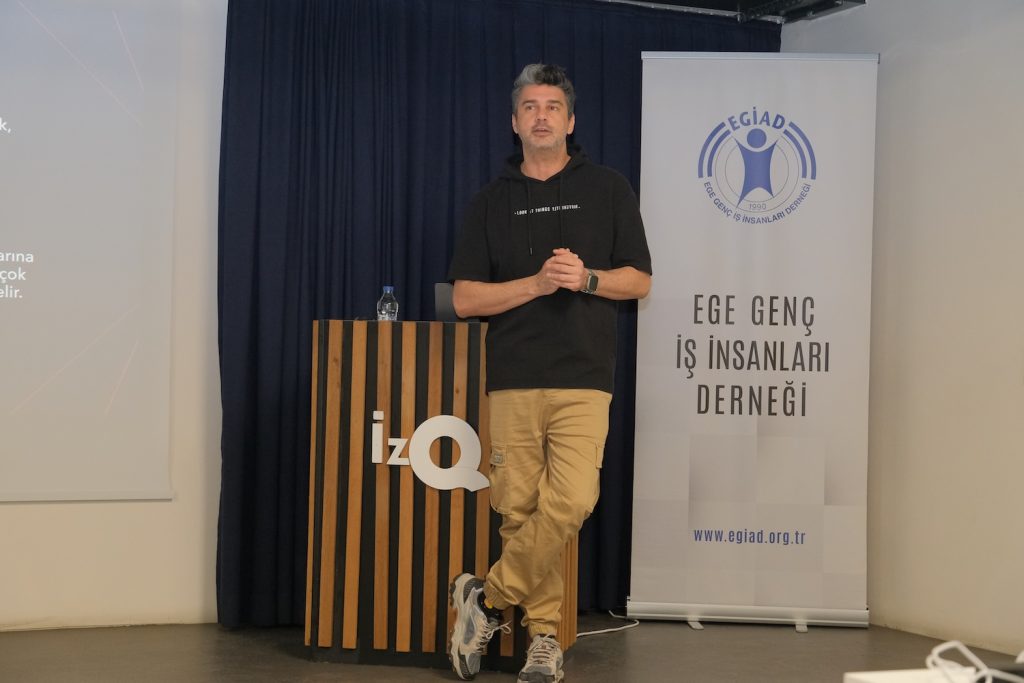 Etkinliğin açılış konuşmasını gerçekleştiren EGİAD Yönetim Kurulu Başkanı Kaan Özhelvacı, dijital dönüşümün iş dünyasında yeni bir paradigma oluşturduğunu belirterek şu değerlendirmede bulundu. Özhelvacı, “Günümüzde yapay zekâ, yalnızca bir teknoloji başlığı olmaktan çıkmış; iş yapış biçimlerimizi yeniden tanımlayan, karar alma süreçlerimizi hızlandıran ve rekabet gücümüzü doğrudan etkileyen stratejik bir unsur haline gelmiştir. Bu yeni dönemde fark yaratan kurumlar, teknolojiyi sadece kullanan değil; onu doğru sorularla yöneten ve iş süreçlerine entegre edebilen kurumlar olacaktır” dedi.